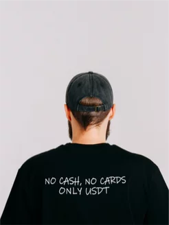 Футболка черная с вышивкой "No cash, no cards, only usdt"