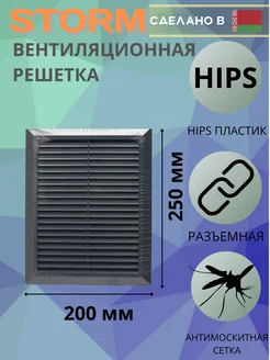 Вентиляционная решетка серая 200х250 мм с сеткой