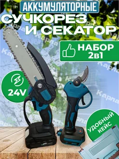 Набор Секатор и Сучкорез аккумуляторный, мини цепная пила