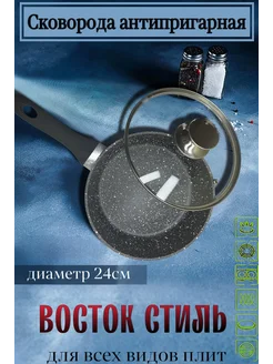 Сковородка с крышкой мраморное покрытия 24 см индукция