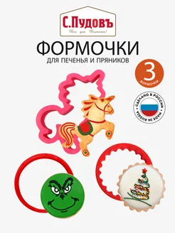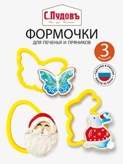 Новогодние формочки для печенья, вырубки для пряников, 3 шт