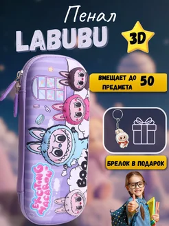 Пенал лабубу для девочки школьный 3D и трендовый брелок