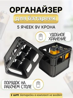 Органайзер для батареек на 5 ячеек 9V крона