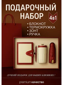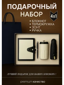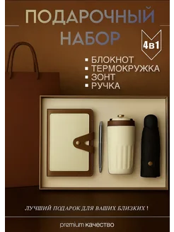 Подарочный набор с ежедневником термосом ручкой и зонтом