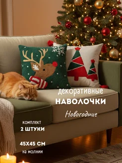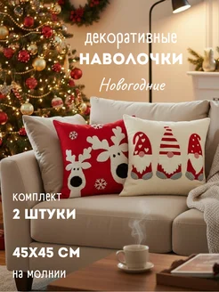 Наволочки декоративные новогодние 45х45 на молнии 2 шт набор