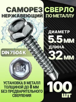 Кровельный саморез нержавеющий DIN 7504 K 100 шт. 5,5х32 мм