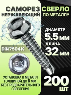 Кровельный саморез нержавеющий DIN 7504 K 200 шт. 5,5х32 мм
