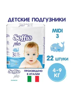 Подгузники детские 4-9 кг, размер Midi 3, 22 шт