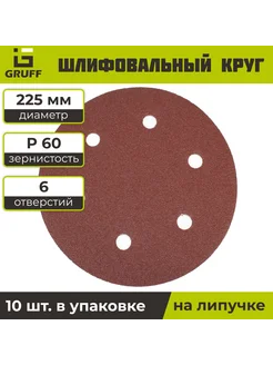 Шлифовальный круг 225 мм на липучке 10шт Р 60 6 отверстий