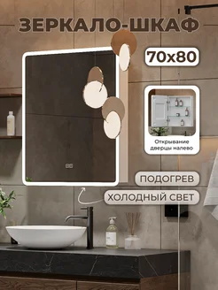 Зеркало-шкаф с подсветкой и подогревом в ванную 70*80 левый