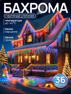Гирлянда уличная бахрома 36 метров на дом садовая