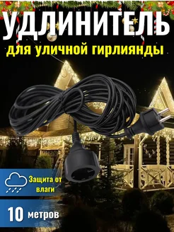 Удлинитель для уличной гирлянды, белый провод, 10 метров