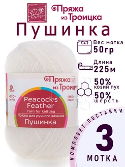 Пряжа Троицкая Пушинка цвет №01 белый 3 шт