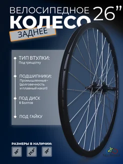 Колесо для велосипеда заднее диаметром 26 дюймов под диск