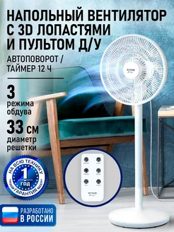 Вентилятор напольный для дома с пультом и таймером, 60 Вт