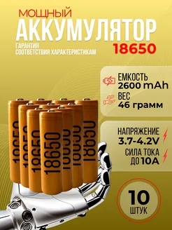 Литиевый аккумулятор 18650 Li-ion 10 шт