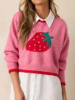 Свитер вязаный оверсайз с клубничками