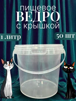 Ведро пищевое 1 литр пластиковое с крышкой 50 штук