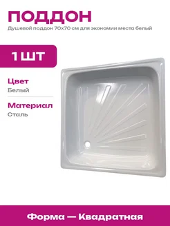 Эмалированный стальной поддон 700х700 мм для душевой кабины