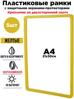 Рамка А4 пластиковая желтая на скотче набор 5 штук