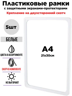 Рамка А4 пластиковая белая на скотче набор 5 штук