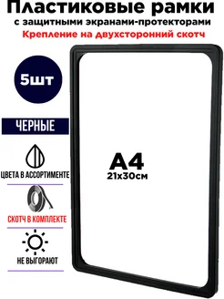Рамка А4 пластиковая черная на скотче набор 5 штук