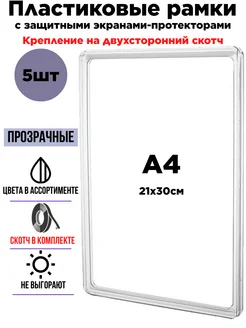 Набор пластиковых рамок А4 прозрачные 5 штук