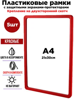 Рамка А4 пластиковая красная на скотче набор 5 штук