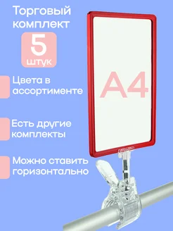 Ценникодержатель А4 на большой прищепке для труб, корзин