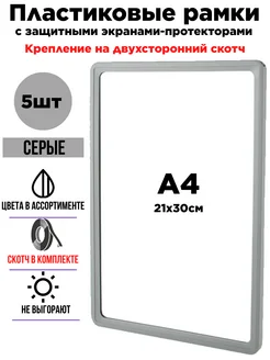 Рамка А4 пластиковая серая на скотче набор 5 штук