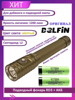 Фонарь подводный «RD3», желтый свет 1200лм с аккумуляторами