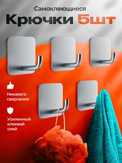 Крючки самоклеящиеся для ванной настенные 5 штук серебро