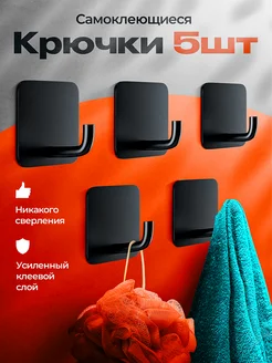 Крючки самоклеящиеся для ванной настенные 5 штук черный