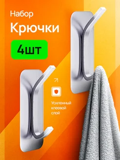 Крючки самоклеящиеся для ванной настенные 4 штук серебро