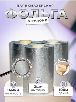 Фольга парикмахерская 14 мкр 100м 3 рулона