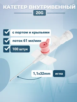 Катетер внутривенный 20 G (1 1*32 мм)-100 шт