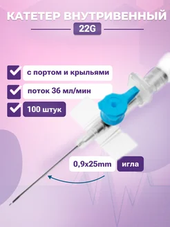 Катетер внутривенный 22 G (0 9*25 мм)-100 шт