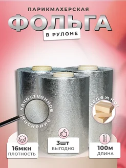 Фольга парикмахерская 16 мкр 100м 3 рулона