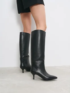 Сапоги демисезонные натуральная кожа с широким голенищем