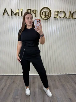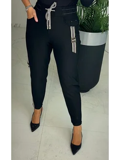 Брюки трикотажные плотные со стразами