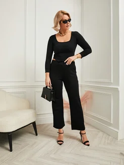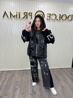 БРЮКИ ПАЛАЦЦО трикотажные плотные со стразами