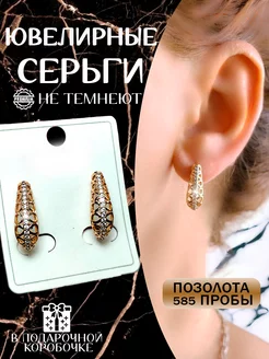 Серьги бижутерия с камнями под золото
