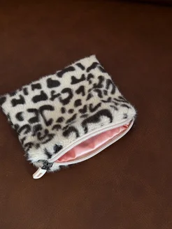 Мини косметичка леопардовая плюшевая