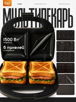 Мультипекарь 6 в 1 вафельница бутербродница орешница гриль