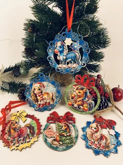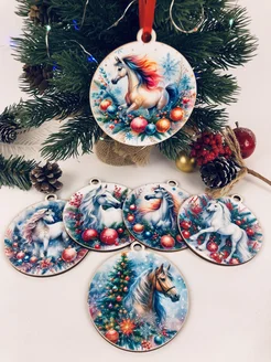 Набор деревянных елочных игрушек символ 2026 года лошадь