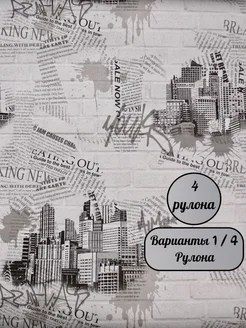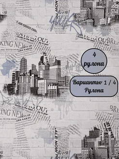 Обои бумажные под кирпич с рисунком города 53 см 10 м