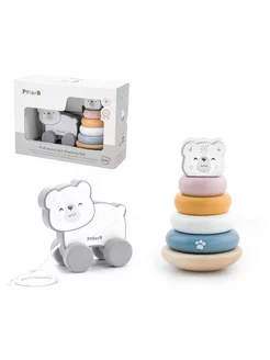 Набор Toys Пирамидка и каталка на веревке Белый Мишка