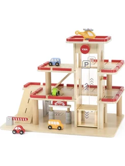 Парковка деревянная для малышей 4 уровня с машинками 44763