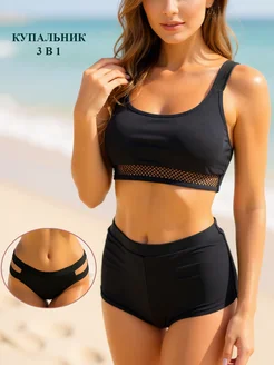 Купальник раздельный 3 в 1 бандо ткань рубчики