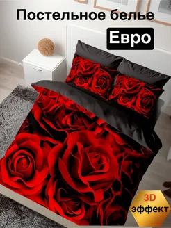 Постельное белье евро 3д рисунок сатин наволочки 50х70 70х70